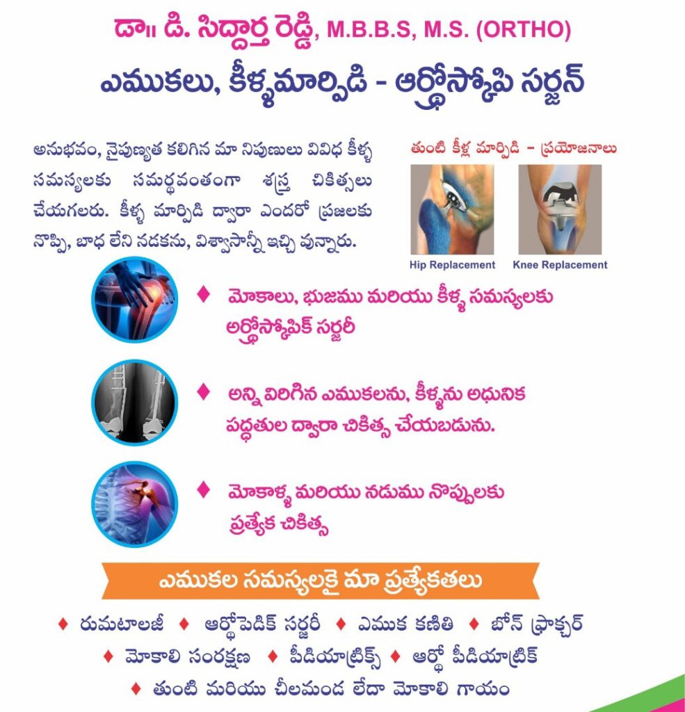 The Orthopaedics Department at Sri Balaji Multi-Speciality Hospital provides comprehensive care for bone, joint, muscle, and spine-related conditions. Our orthopaedic specialists diagnose and treat fractures, arthritis, joint pain, back and neck problems, sports injuries, and age-related mobility issues. We focus on pain relief, restoring movement, and improving overall function through accurate diagnosis, personalized treatment plans, and advanced orthopaedic care.